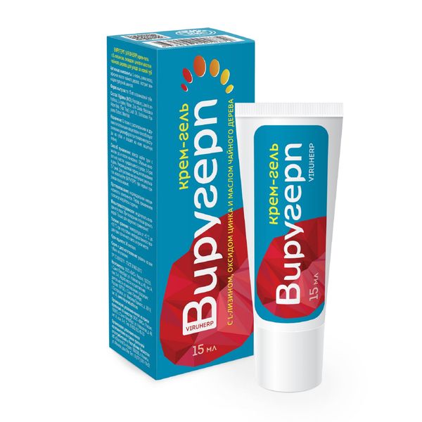Крем-гель для ухода за кожей губ с L-лизином, оксидом цинка и маслом чайного дерева Виругерп туба 15мл