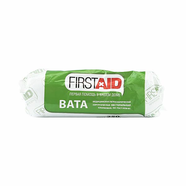 Вата нестерильная хирургическая гигроскопичная хлопковая First Aid/Ферстэйд 250г
