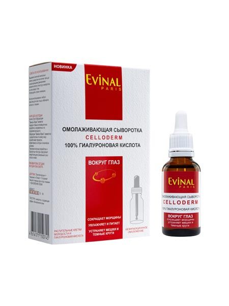 Сыворотка для кожи вокруг глаз омолаживающая с гиалуроновой кислотой 100% Celloderm Evinal/Эвиналь 30мл