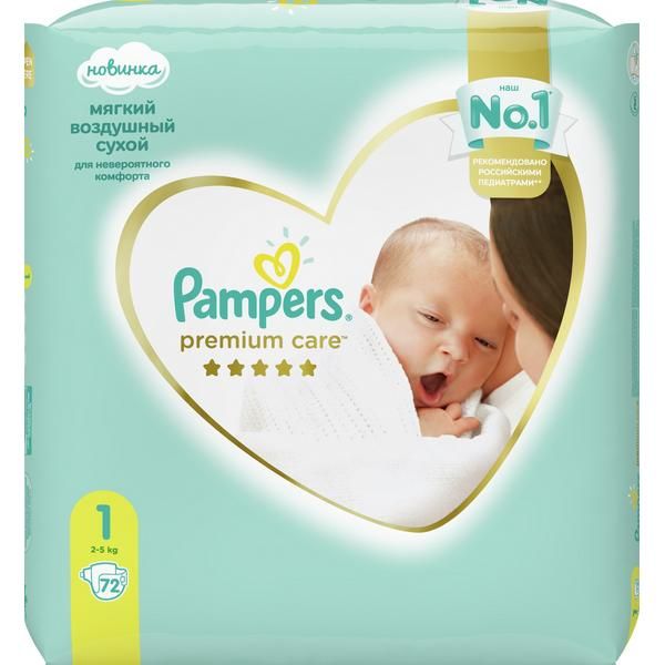 Подгузники Pampers (Памперс) Premium Care 2-5 кг, размер 1, 72 шт.