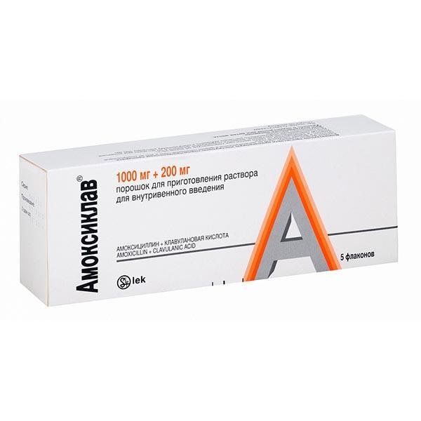 Амоксиклав порошок для приг. раствора для в/в введ. 1000мг+200мг 5шт