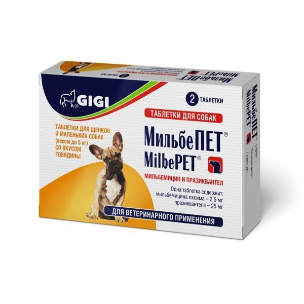 МильбеПет таблетки для щенков и маленьких собак весом до 5кг 2шт
