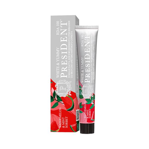 Паста зубная President/Президент white & yummy арбузно-мятный сорбет туба 75г