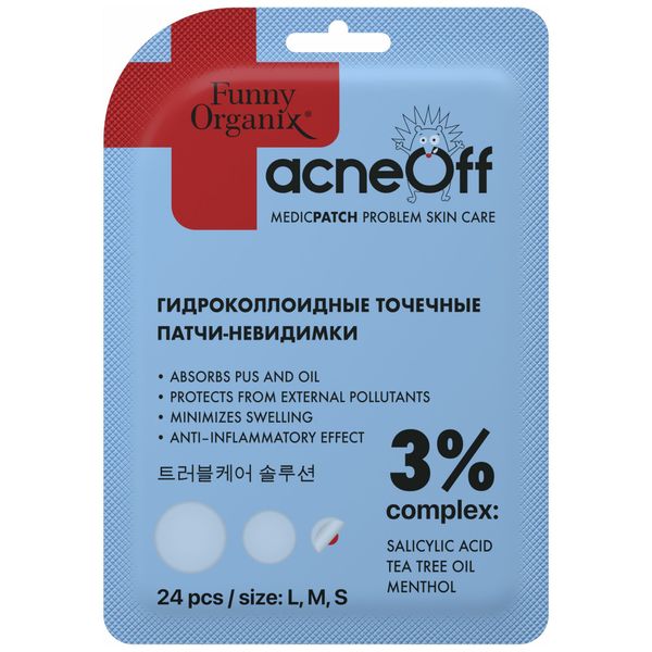 Патчи-невидимки точечные гидроколлоидные с салициловой кислотой и ментолом Funny Organix/Фанни Органикс