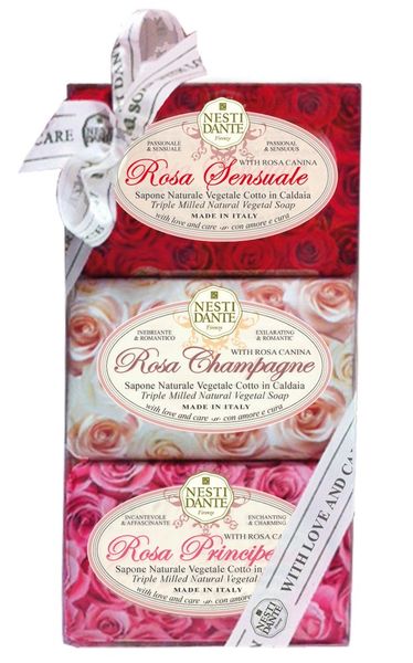 Набор Nesti Dante/Нести Данте: Мыло роза принцесса 150г+ Мыло роза чувственная 150г+Мыло роза шампань 150г