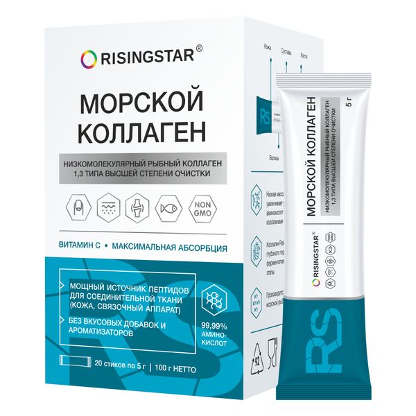 Коллаген морской с витамином С Risingstar порошок стики 5г 20шт