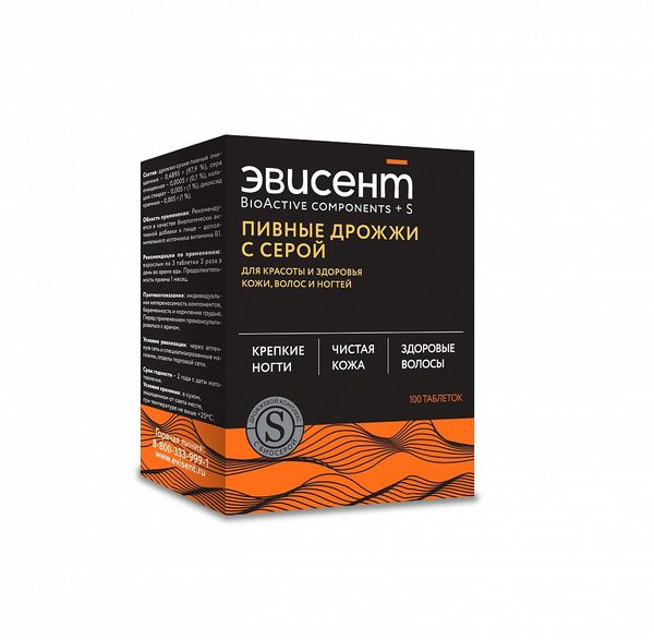 Дрожжи пивные с серой Эвисент таблетки 100шт