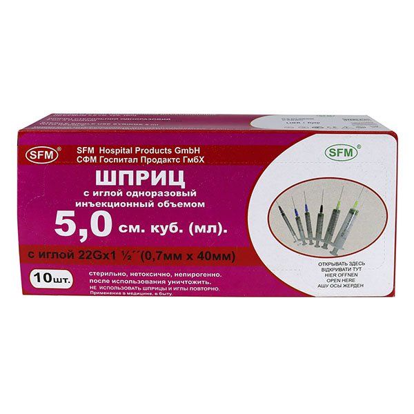 Шприц SFM Hospital (СФМ Госпиталь) 3-х компонентный 5 мл 0,7x40 мм 10 шт.