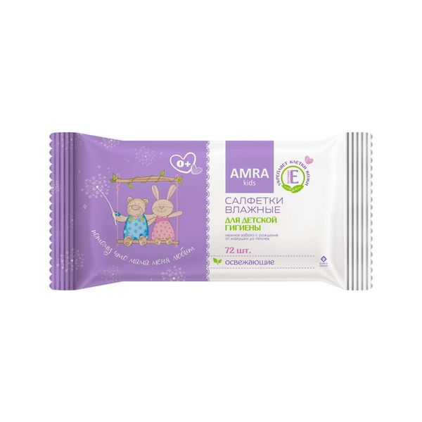 Салфетки влажные для детской гигиены освежающие Amra/Амра 72шт