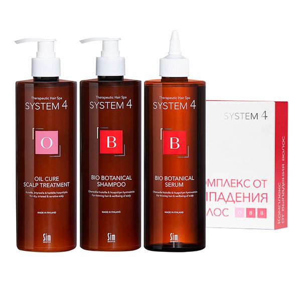 Набор биоботанический от выпадения волос System 4/Система 4: Шампунь 500мл+Сыворотка 500мл+Маска О отшелушивающая 500мл