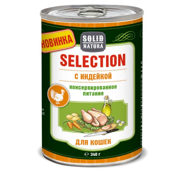 Корм влажный для кошек с индейкой Selection Solid Natura жестяная банка 340г