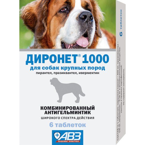 Диронет 1000 таблетки для собак крупных пород 6шт