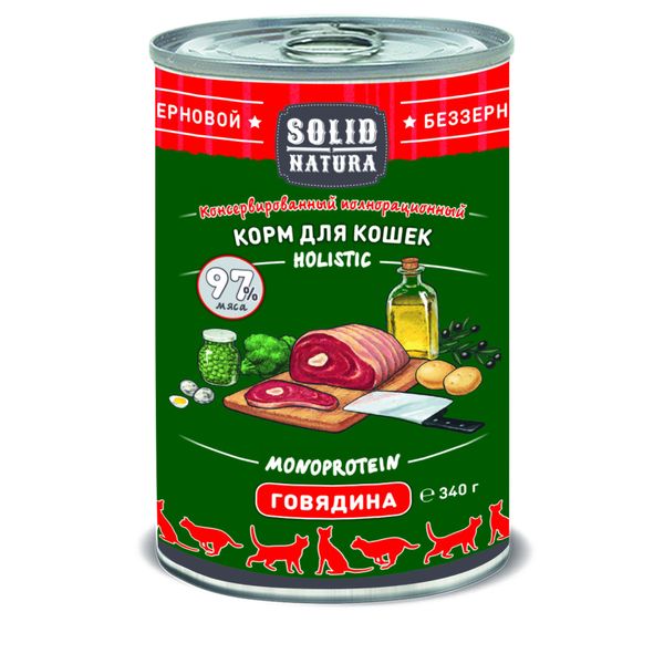 Корм влажный для кошек говядина Holistic Solid Natura жестяная банка 340г