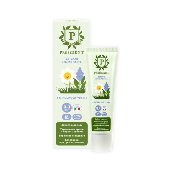 Паста зубная детская альпийские травы от 0 до 3 лет 25RDA President/Президент 32г