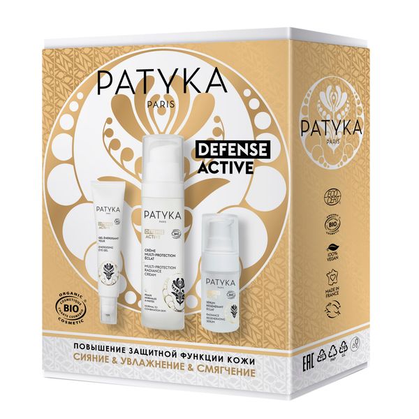 Набор Defense active Patyka/Патика: Крем для комбинированной кожи 50мл+Гель для кожи контура глаз 15мл+Сыворотка-сияние 10мл