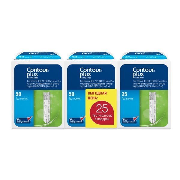 Набор: Тест-полоски для глюкометра Plus Contour/Контур 50шт 2уп +25шт