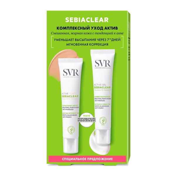 Набор Active Sebiaclear SVR/СВР: Крем-уход комплексный для смешанной склонной к акне кожи универсальный тон 40мл+Гель туба 40мл