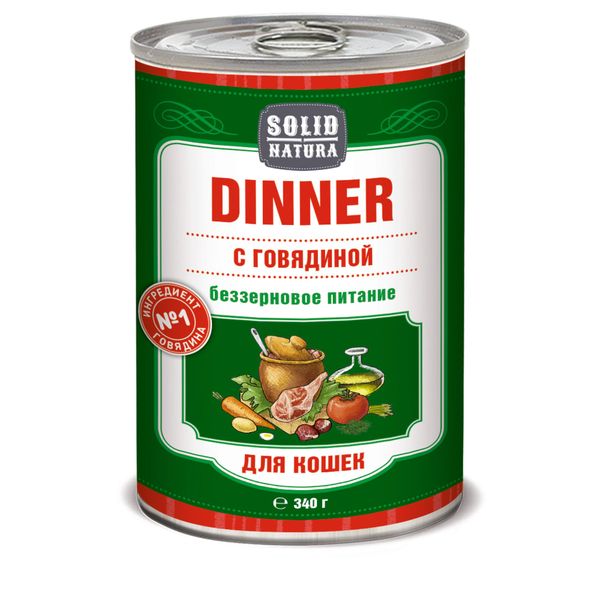 Корм влажный для кошек говядина Dinner Solid Natura жестяная банка 340г