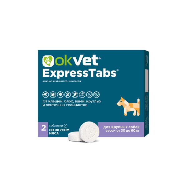 ОкВет ЭкспрессТабс для собак от 30кг до 60кг таблетки 2шт