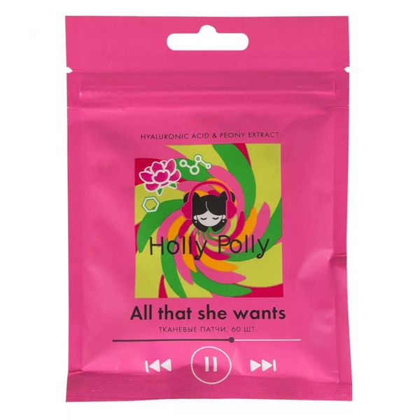 Патчи тканевые для глаз с гиалуроном и экстрактом пиона All that she wants Holly Polly/Холли Полли 60шт