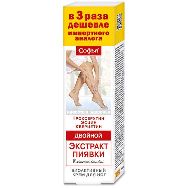 Крем для ног троксерутин, эсцин, кверцетин Двойной экстракт пиявки Софья 125мл