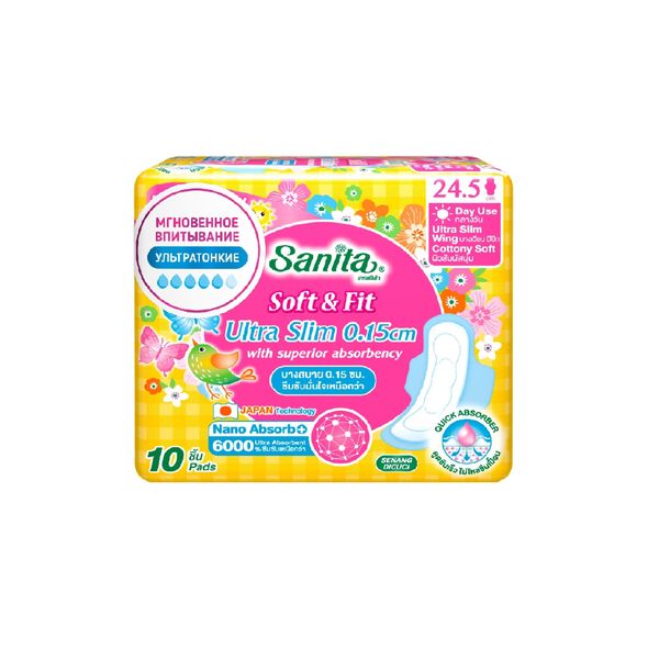 Прокладки гигиенические ультратонкие Ultra Slim Soft&Fit Sanita/Санита 24,5см 10шт