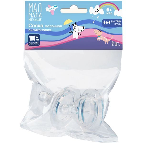 Мал мала меньше соска молочная силиконовая (быстрый поток) 2 шт.от 6 мес