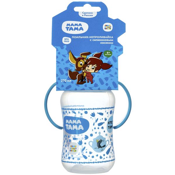 Поильник-непроливайка с силиконовым носиком с 6 мес. цвет синий Мама тама 270мл (MT/009)