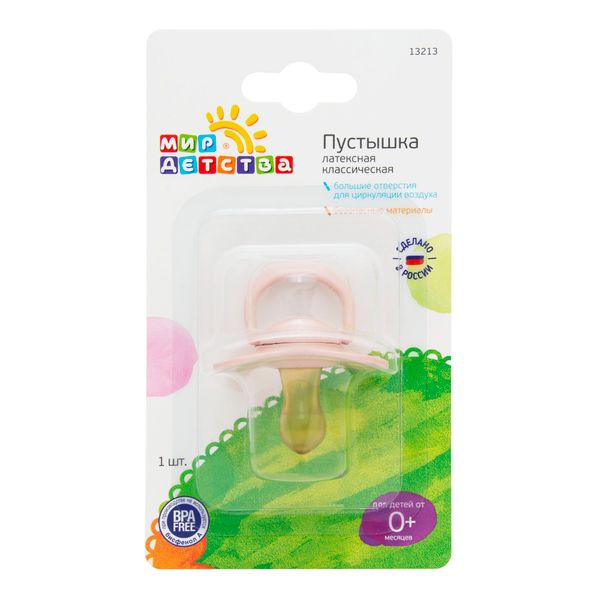 Соска-пустышка латексная классическая с 0 мес. Мир детства (13213)