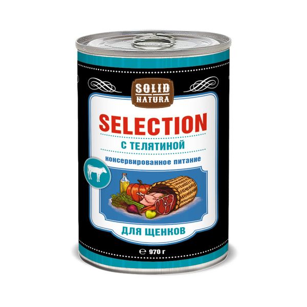 Корм влажный для щенков телятина Selection Solid Natura жестяная банка 970г