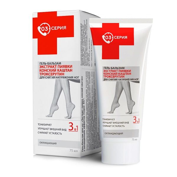 Гель-бальзам для ног с охлаждающим эффектом экстракт пиявки, конский каштан, троксерутин Серия 03 туба 75мл