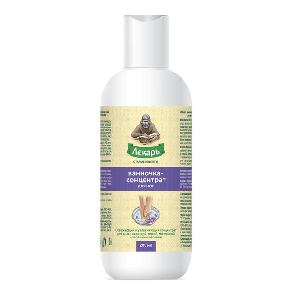 Ванночка-концентрат для ног освежающий и увлажняющий с лавандой, мятой, мочевиной и хвойными маслами Лекарь фл. 200мл
