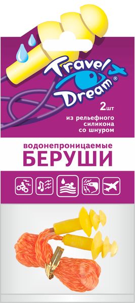 Беруши силиконовые защита от воды со шнуром Travel Dream/Трэвел дрим (1 пара) 2шт