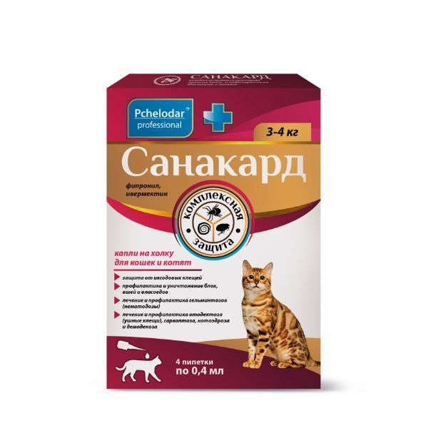 Санакард капли на холку для кошек и котят 0,4мл 4шт