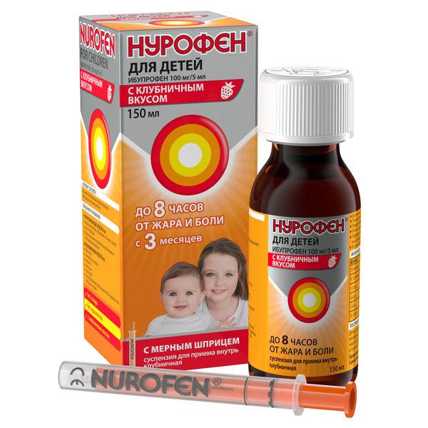 Нурофен для детей сусп. для внутр. прим. клубника 100мг/5мл 150мл
