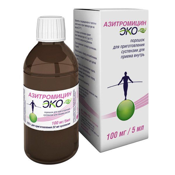 Азитромицин Экомед+шприц для дозирования порошок для приг. суспензии для приема внутрь 100мг/5мл 16,5г