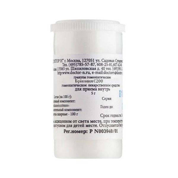 Бриония С200 монок. раст. происх. гранулы гомеопатические 5г