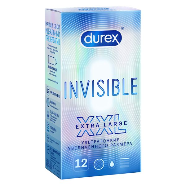 Презервативы из натурального латекса XXL Invisible Durex/Дюрекс 12шт