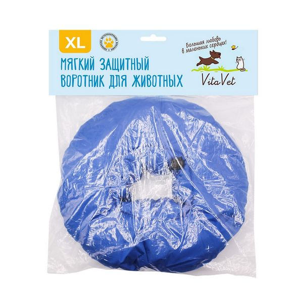 Воротник для животных мягкий синий вн. диаметр 40см обхват шеи 35-50см VitaVet от 10кг р.XL