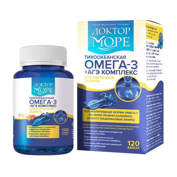Тихоокеанская Омега-3+АГЭ комплекс Доктор Море капсулы 0,25г 120шт