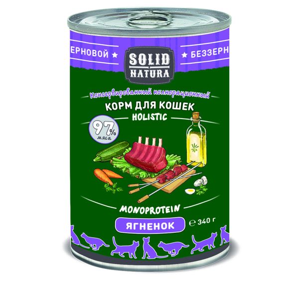 Корм влажный для кошек ягнёнок Holistic Solid Natura жестяная банка 340г