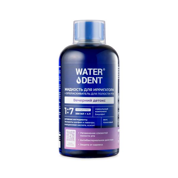 Жидкость для ирригатора+Ополаскиватель со вкусом кокоса Вечерний детокс Waterdent/Вотердент 500мл