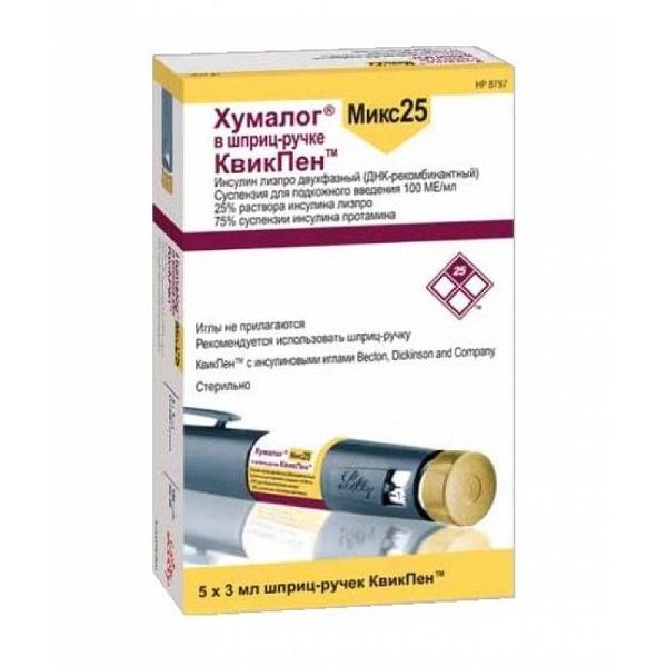 Хумалог Микс 25 суспензия для п/к введ. картридж со шприц-ручкой КвикПен 100МЕ/мл 3мл 5шт