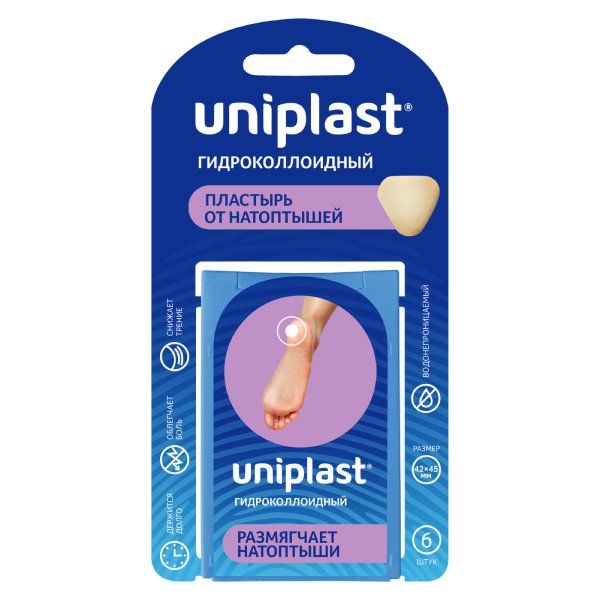 Пластырь гидроколлоидный от натоптышей Унипласт 4,2см х 4,5см 6 шт.