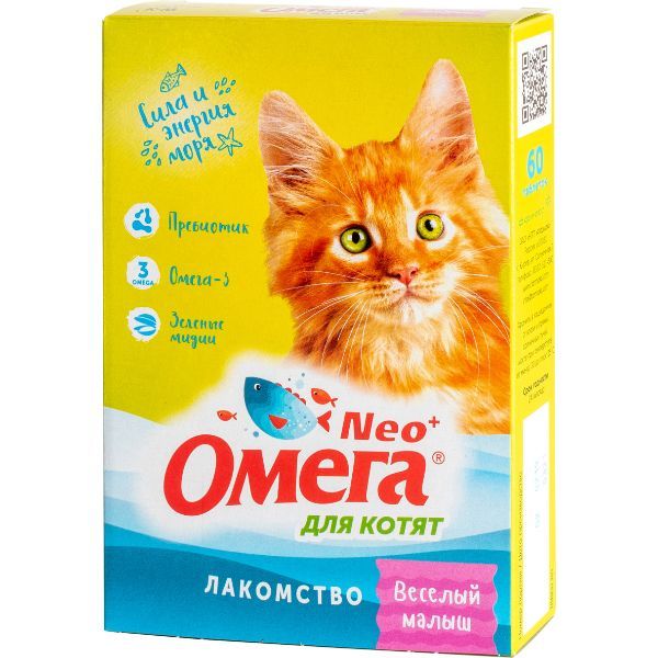 Лакомство Веселый малыш для котят с пребиотиком и таурином Омега Nео+ таблетки 60шт
