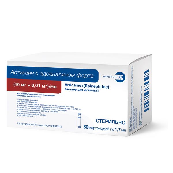 Артикаин с адреналином форте р-р д/ин. 40мг/мл+0,01мг/мл картридж 1,7мл №50