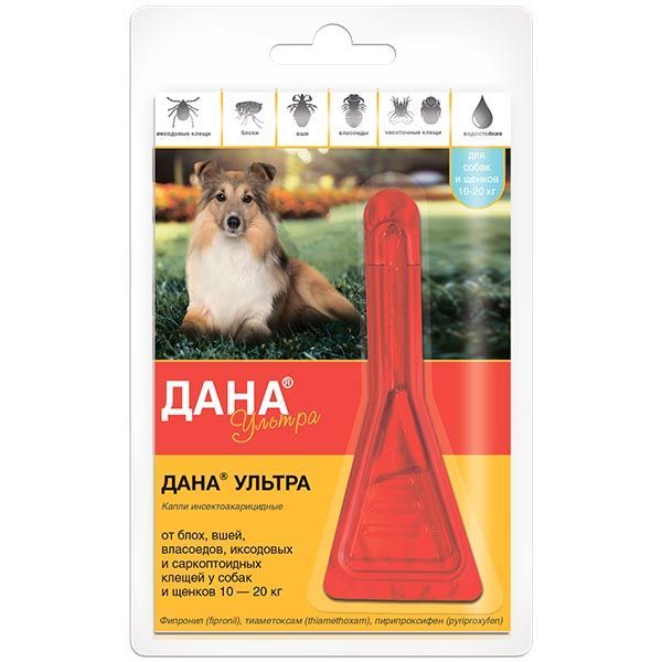 Дана Ультра капли на холку для собак и щенков 10-20кг 1,6мл