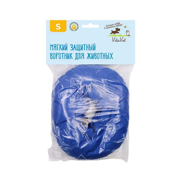 Воротник для животных мягкий синий вн. диаметр 28см обхват шеи 10-30см VitaVet 2-4кг р.S
