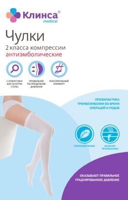 Чулки антиэмболические 2 класс компрессии белый, 1 пара исполн. 1 женские Клинса р.S