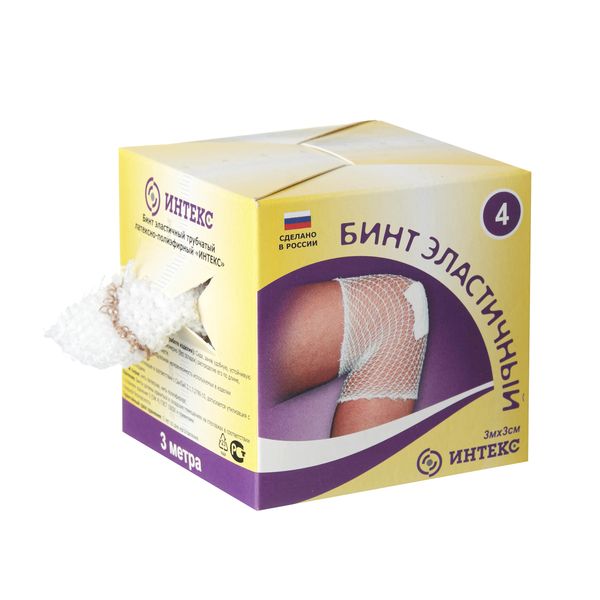Бинт эластичный трубчатый латексно-полиэфирный нестерильный одноразовый Интекс 3м х 3см р.4